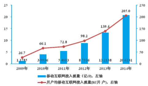 在移動互聯網的推動下,通信及數據傳輸應用發展較快。2012-2014 年, 通信及數據傳輸用連接器的市場規模從 78.43 億美元增長到 107.60 億美元,增長了 37.19%,顯著高于連接器總體的市場規模增速;在連接器總市場規模中的 占比從 2012年的 16.67%提高到 2014年的 20.36%,已成為連接器的第二大應用領域。連接器在通信及數據傳輸上的應用體現在手機、網絡設備、無線網絡基礎設施、電纜設備等方面,連接器在這一應用領域的快速增長和全球移動互聯 網的迅速發展緊密相關。以中國為例,移動互聯網年接入流量從 2009 年的 1.1785億 G增長到 2014年的 20.6231億 G,年均復合增長率達到 77.26%;月戶 均移動互聯網接入流量從 2009 年的 26.7M/月•戶增長到 2014 年的 205.0M/ 月•戶,年均復合增長率達到 50.33%。移動互聯網的迅猛增長態勢促進了網絡設備和移動終端市場的持續擴大,使得通信及數據傳輸用連接器獲得了快速的 發展。