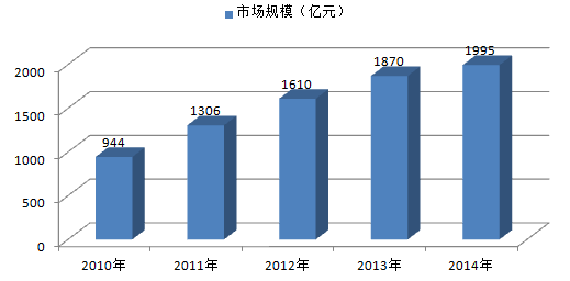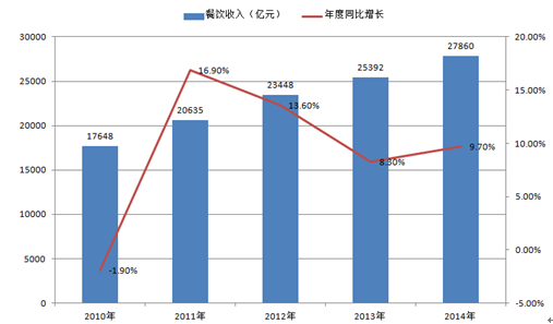 2010-2014年高端連鎖餐飲市場規模走勢圖