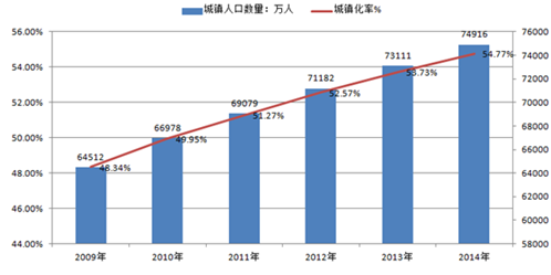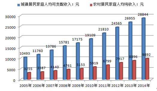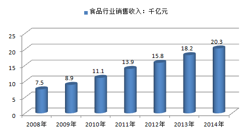 自1978年實施改革開放的三十多年來,中國宏觀經濟長期保持10%以上的年均增速。GDP總量先后超越意、英、法、德、日,目前已成長為世界第二大經濟體。金融危機以來,特別是2013年后,中國經濟正在進入新常態 :經濟增長由之前的政府投資和出口驅動向國內消費驅動過渡,增速由高速區進入中高速區。中國經濟增速雖然放緩,但是并不意味著經濟收縮,其GDP總量和增長速度仍然高于世界絕大多數國家。從中長期來看,中國持續進行的城市化、中產階級的崛起、逐步成為消費主力的千禧一代 、居民收入的預期增長,仍將持續推動食品消費的增長: