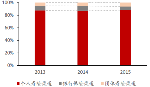 險企的大幅增員和營銷員產能的提高極大的推動了個險渠道收入增長。個險營銷員是長期期交產品和各類高利潤保險產品的重要銷售渠道,是內行價值穩定增長的重要抓手。2015年中國太保、新華保險、中國人壽、中國平安個險渠道實現保費收入913.4億元、513.5億元、2259.6億元,1954.5億元,同比增長27%、9%、10%、22%,個險渠道保費貢獻占比84%、88%、62%、46%,較去年同期增長11個、2個、0.02個、1個百分點。2015年個險渠道貢獻的首年期交保費占比達到了96%、59%、77%、98%,各險企已逐漸將渠道開發的重心轉移至個險上,個險渠道的增強將極大的推動長期起交保費的有效增長,延長獲利時間,擴大獲利空間,加速累積內含價值。
