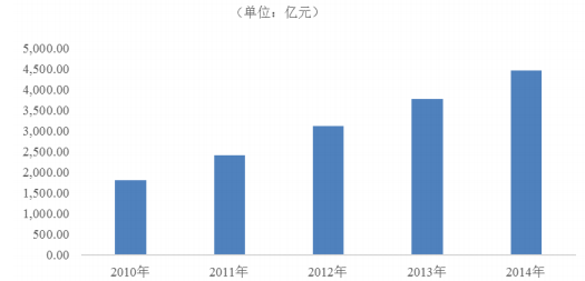 根據(jù)國(guó)家統(tǒng)計(jì)局發(fā)布的數(shù)據(jù),2014年國(guó)內(nèi)完成商業(yè)地產(chǎn)投資額19,987.44億元,較2010年的7,455.78億元,增加了12,531.66億元,復(fù)合年化增長(zhǎng)率高達(dá)27.96%,表明了商業(yè)地產(chǎn)保持了持續(xù)快速的發(fā)展態(tài)勢(shì)。