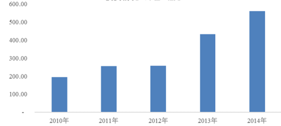 同時(shí)隨著我國(guó)居民生活水平不斷提高,對(duì)健康消費(fèi)的需求也在不斷提升,我國(guó)在衛(wèi)生醫(yī)療領(lǐng)域的投資也不斷增加。2014 年我國(guó)衛(wèi)生行業(yè)新增固定資產(chǎn)投資 2,252.72 億元,比 2010 年的 1,028.22 億元,增加 1,224.5億元,復(fù)合增長(zhǎng)率為 21.66%;2014 年我國(guó)醫(yī)院總數(shù)達(dá) 25,860 個(gè),較 2010 年增幅為23.63%。