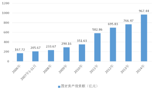 2007 年至 2014 年針織行業(yè)固定資產投資規(guī)模