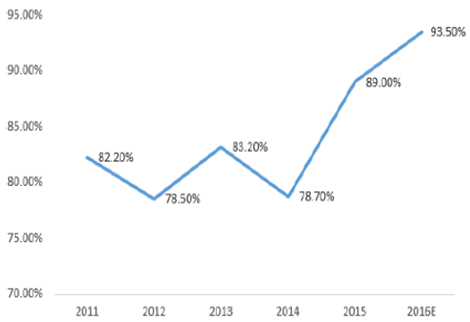 2011-2016年中小企業(yè)互聯(lián)網(wǎng)使用率