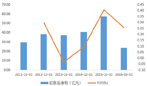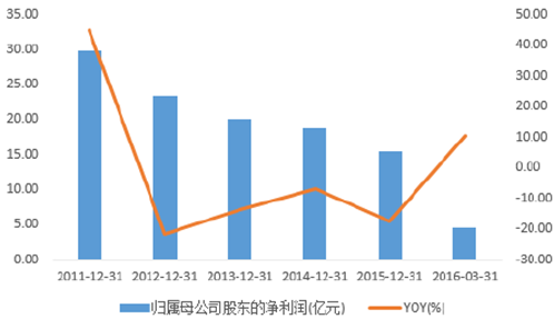 2011-2016年中國男裝扣非后的凈利潤