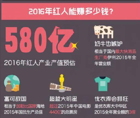 2016中國電商網紅市場規模近580億元