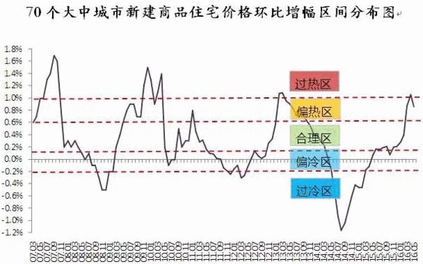 從易居研究院的對房價環比增由的五燈圖來看,今年4月首次進入過熱區間,5月即滑了下來。這也正說明:房價一旦進入過熱區間,很難持久,比如上一輪過熱區間只停留了兩個月:2013年2-3月。