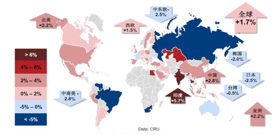 2016 年全球精煉銅消費增速保持 1.7%的低位