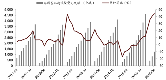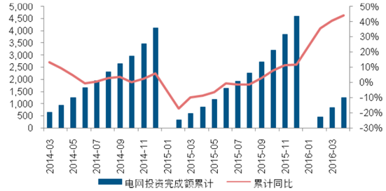 電網基本建設投資完成額同比顯著提高