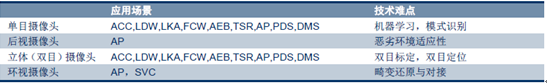 目前攝像頭的應用主要有:1)單目攝像頭,一般安裝在前擋風玻璃上部,用于探測車輛前方環境,識別道路、車輛、行人等,廣泛應用于自適應巡航、車道偏離預警、前撞預警、行人監測等功能中;2)后視攝像頭,一般安裝在車尾,用于探測車輛后方環境,應用于倒車可視系統;3)立體攝像頭,或稱雙目攝像頭,利用兩個經過精確標定的攝像頭同時探測車輛前方環境,實現更高的識別精度和更遠的探測范圍;4)環視攝像頭,一般至少包括四個攝像頭,分別安裝在車輛前、后、左、右側,實現360°環境感知,應用于自動泊車和全景泊車系統。