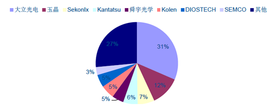 鏡頭模組:國內鏡頭行業龍頭地位穩固,有望快速發展。光學鏡頭目前廣泛用于手機、車載、相機等領域,由于手機等數碼產品增長放緩,鏡頭產業轉移到車載趨勢明顯。國內行業龍頭優勢地位明顯,如舜宇光學車載后視鏡頭出貨量目前居全球第1位,全球市場占有率達30%左右,已進入各大車企(BMW、Benz、Audi等)前裝市場。我們預計未來車載鏡頭業務提升有望推動國內行業龍頭業績快速增長。推薦:歐菲光、舜宇光學、臺灣勝開科技等。