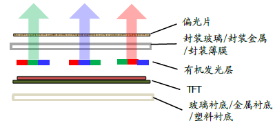 AMOLED在平板、PC以及更大尺寸的電視領域的應用仍待發酵,主要受制于技術成熟度。一是背板技術的挑戰:目前LTPS在大尺寸應用上存在困難,IGZO雖然可以應用于大尺寸,但量產技術尚不成熟;二是OLED發光材料蒸鍍技術,OLED發光方式分為RGB三基色法和OLED白光+彩色濾光片法,RGB三基色法的三組發光材料逐一蒸鍍時需要借助掩膜板,大尺寸的掩膜板熱脹冷縮明顯,會造成偏移;OLED白光+彩色濾光片法中的彩色濾光片會阻擋光通過,不能充分發揮AMOLED主動式發光的優勢。