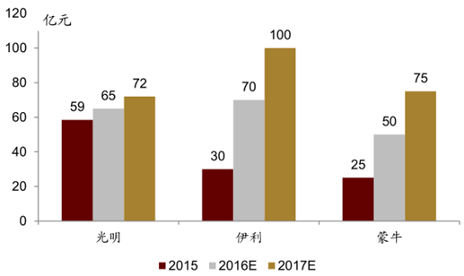 未來(lái)兩年三大企業(yè)常溫酸奶的規(guī)模預(yù)測(cè)