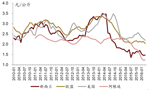 全球主要出口國(guó)原奶收購(gòu)價(jià)格走勢(shì)