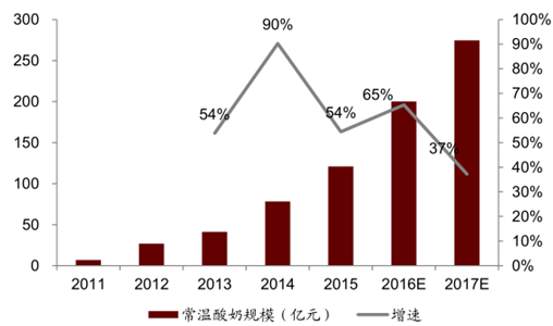 常溫酸奶品類(lèi)的規(guī)模及增速預(yù)測(cè)