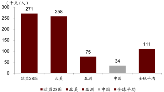 2015 年人均奶類(lèi)消費(fèi)量的國(guó)際比較