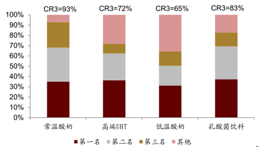 隨著我國(guó)人均奶類(lèi)消費(fèi)量的逐年提升以及人口與渠道紅利的結(jié)束,行業(yè)供不應(yīng)求的階段已經(jīng)過(guò)去,未來(lái)的消費(fèi)者需求更多由企業(yè)產(chǎn)品創(chuàng)新拉動(dòng)。從我國(guó)液體乳的品類(lèi)空間來(lái)看,低溫和常溫產(chǎn)品保持三七開(kāi)的比例結(jié)構(gòu),因前兩大下游龍頭優(yōu)勢(shì)均在常溫,使得常溫品類(lèi)的集中度較高,競(jìng)爭(zhēng)相對(duì)激烈。低溫未來(lái)的空間更大,競(jìng)爭(zhēng)格局也相對(duì)緩和。但低溫產(chǎn)品因受制于奶源、冷鏈、消費(fèi)習(xí)慣及商業(yè)模式,發(fā)展速度一直偏慢。