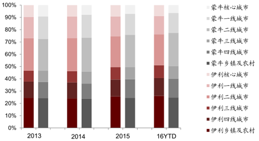 2016YTD 三家企業(yè)常溫酸奶的渠道下沉進(jìn)程