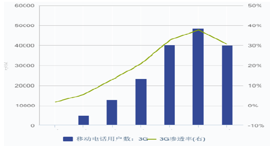 3G用戶(hù)數(shù)及滲透率(單位:萬(wàn)人)