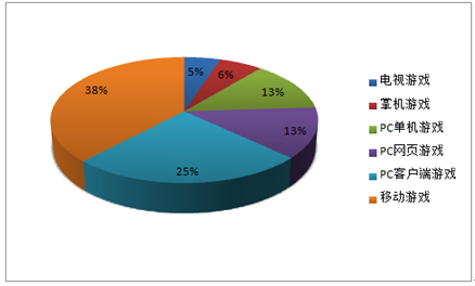 移動游戲份額增長至39.2%,端游份額自2016年跌落50%以下,移動游戲成為推動網絡游戲行業增長的主要動力。預計整個市場會在2016年出現拐點,移動市場份額將首次超過端游,成為最大的細分市場。
