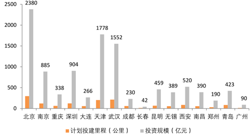 十三五規劃綱要明確新增城市軌道交通運營里程約 3000 公里,按目前現有線路平均投建成本 6.9 億元/公里估算,總投資規模約 2.1 萬億元;國家収改委、交通運輸部聯合印収《交通基礎設施重大工程建設三年行動計劃》 (簡稱《行動計劃》 ) 。 《行動計劃》指出,2016-2018 年,擬重點推進鐵路、公路、水路、機場、 城市軌道交通項目 303 項, 及項目總投資約 4.7 萬億元, 其中城市軌交項目擴建線路約 2000公里,投資規模約 1.65 萬億元,投資占總規劃 35.11%。