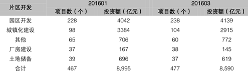 2016 年1-3 月 PPP項目庫中片區開與項目數及投資額明細