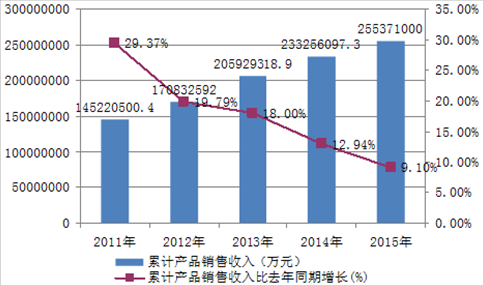2011-2015年醫藥制造業收入和增長情況