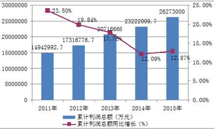 2011-2015年醫藥制造業利潤和增長情況