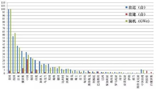 目前31 個國家擁有445 臺商業核動力反應堆,總裝機容量達387GW,另外還有64 座商用核動力反應堆在建,相當于目前核電裝機容量的18%。