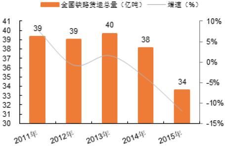 2011-2015年全國鐵路貨運總量與增速