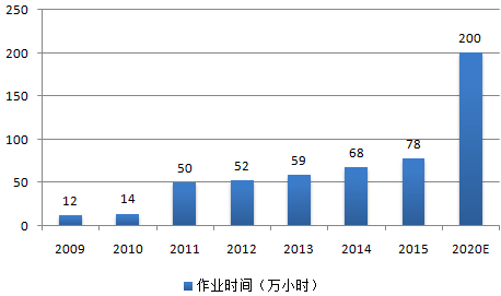 2020年國內通用航空歷年作業時間預測