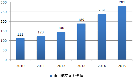 2010-2015年中國通用航空企業數量