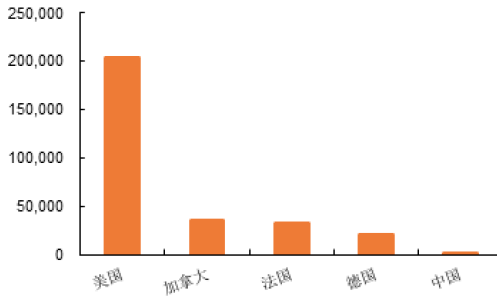 2015年,在全球36萬架通用飛機的擁有量當中,美國以20.4萬架位居首位,占比達到56.7%;加拿大、法國擁有量均超過3.2萬架,德國、英國、巴西擁有量為2萬架左右。