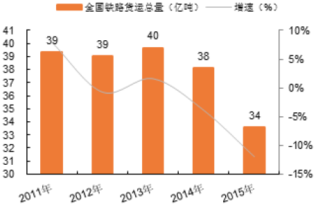 2011-2015年全國鐵路貨運總量與增速
