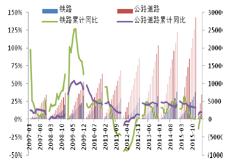 鐵路公路等子行業投資底部企穩(億元)
