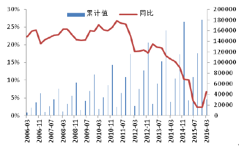 房地產開發投資增速底部企穩(億元)