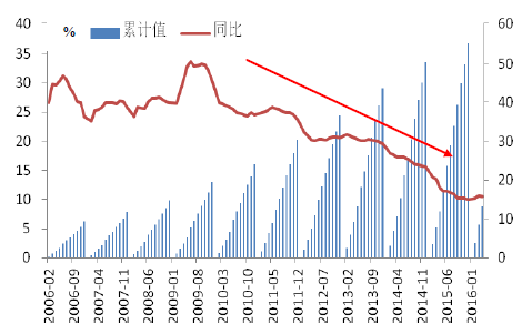 民間固定資產投資增速下行(億元)