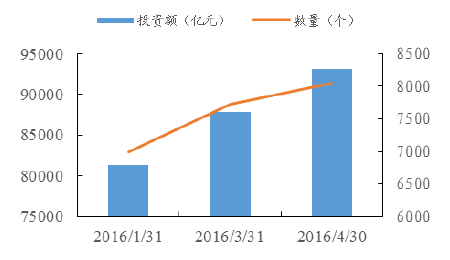財政部14年開始推介PPP項目,首批推介項目30個,于2015年9月推介了第二批PPP項目共203個,投資額為6493億元。財政部在今年成立了資本合作中心 CPPPC 平臺。至4月末,PPP平臺上已有項目8042個,投資額9.31萬億元。比3月末增加321個、0.53萬億元。