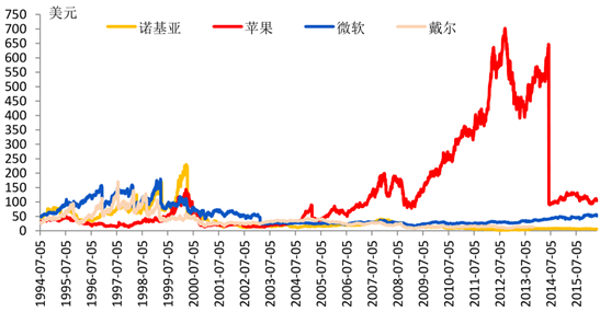 智能手機龍頭的出現, 打破原有的通訊行業格局, 舊的手機巨頭摩托羅拉和諾基亞迅速衰賢,而以蘋果為代表的智能手機新龍頭蘋果公司卻迅速崛起,充分享受了行業發展帶來的紅利。不僅如此,正因為智能手機和移動互聯網的快速普及,帶來辦公和娛樂習慣的改變,原來的辦公設備PC 硬件龍頭戴爾和 PC 操作系統軟件龍頭微軟也日漸式微。