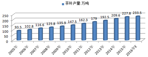 2005-2016年茶葉產(chǎn)量規(guī)模