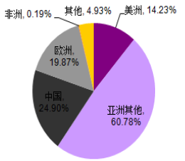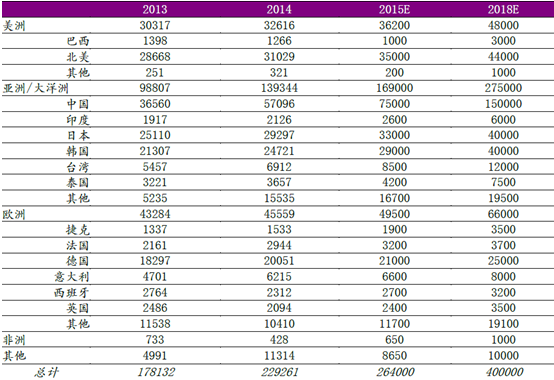 分地區來看,亞洲是工業機器人銷售量最大的地區。根據IFR 統計,2014 年亞洲和大洋洲供應量約13.9 萬臺,占世界總量的60.83%,同比增長40.98%; 美洲供應量約3.3 萬臺,占比14.4%,同比增長6.5%;歐洲供應量約4.5 萬臺, 占比19.7%,同比增長5.3%。