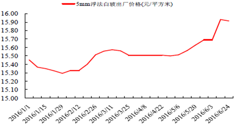2016年全國5mm浮法白玻出廠均價(元/平方米)
