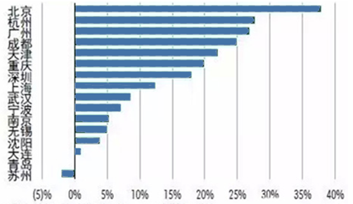 上海:2016年全市寫字樓平均租金預計增長1.8%。上海中心等項目的交付使用將緩解浦東極度供不應求的局面,同時新增項目普遍超過50%的預租率顯示板塊租金短期內(nèi)仍具備繼續(xù)上行動力。