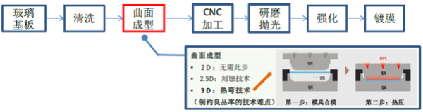目前3D玻璃生產的工藝主要有:開料、CNC、研磨拋光、烘烤、鍍膜、熱彎等,其中熱彎工藝是最為關鍵,制約著良品率的高低。目前國內用于生產3D曲面玻璃的熱彎機主要以進口韓國設備為主,價格在120-180萬,月產能在1.5萬片左右,遠不能滿足市場需求。
