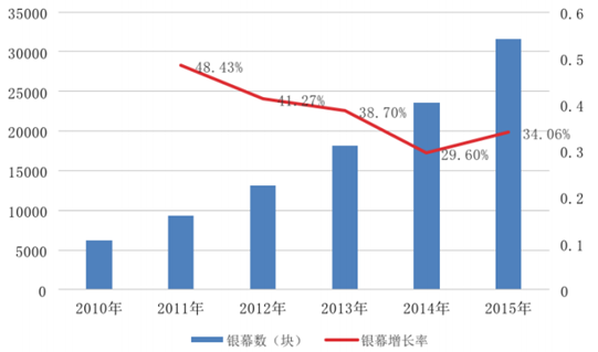 2006 年以來,隨著我國電影院線制改革的逐步深入及產業結構不斷升級,城市影院與銀幕建設速度不斷加快。據統計,2013 年,全國新增銀幕 5,077 塊,平均每天新增 13.9 塊銀幕,是 2012 年增長速度的 1.32 倍。2014 年,我國銀幕總數為 23,592 塊,平均每天新增 14.78塊,是 2013 年增長速度的1.06 倍。2015 年末,我國銀幕總數已達到31,627 塊。