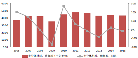 2006-2015年全球半導(dǎo)體材料市場銷售額