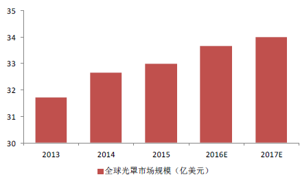 國際半導(dǎo)體設(shè)備與材料協(xié)會(huì)(SEMI)公布:2015 年全球半導(dǎo)體光罩(photomask)銷售額為33 億美元,預(yù)計(jì)可在2017 年達(dá)到34 億美元。2014 年光罩市場增長了3%,2015 年增長了1%。光罩市場有望在2016 年和2017 年,分別增長2% 和3%。IC 市場主要驅(qū)動(dòng)因素仍是先進(jìn)工藝節(jié)點(diǎn)(小于45 納米),以及亞太地區(qū)的半導(dǎo)體制造業(yè)的成長。臺(tái)灣仍是最大的光罩市場,連續(xù)五年排名第一,并預(yù)期在短期之內(nèi)仍將保持第一名地位。