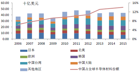 2006-2015年各國半導(dǎo)體材料市場銷售額