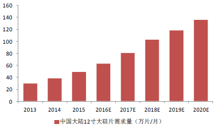 2013-2020年中國大陸12 寸大硅片需求統(tǒng)計(jì)及預(yù)測