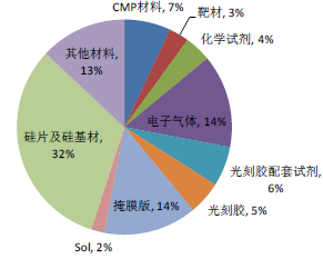 在高純化學(xué)試劑產(chǎn)業(yè)方面,超凈高純試劑包括無機(jī)酸類、無機(jī)堿類、有機(jī)溶劑類和其他類,用于濕法清洗劑、光刻膠配套試劑、濕法蝕刻劑和摻雜以及芯片銅互連電鍍,是集成電路、分立器件、平板顯示、太陽能電池等制造用關(guān)鍵材料。預(yù)計(jì)2014 年和2015 年全球半導(dǎo)體制造用高純化學(xué)試劑市場將達(dá)到26.9 億美元和28 億美元。我國半導(dǎo)體制造用高純試劑市場規(guī)模2014 年和2015 年有望增長到23.5 億元和27.4 億元。